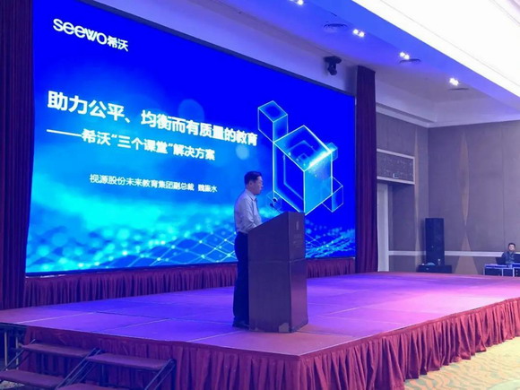 各省轄市教育主管教學(xué)工作的負責(zé)同志、主管信息化工作的負責(zé)同志、基教科長、教研室主任、電教館長、各縣教育局主管教學(xué)工作的負責(zé)同事、主管信息化工作的負責(zé)同志等眾位嘉賓出席了本次會議。視源股份未來教育集團副總裁魏振水代表希沃在會上作了《助力公平、均衡而有質(zhì)量的教育》的專題發(fā)言。