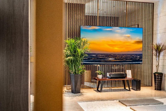 王先生面露慈色說「他媽媽看電視傷眼睛,我都要在一旁掐著她看電視的時(shí)間,F(xiàn)在這個(gè)任務(wù)就交給海信激光電視了,它會(huì)自動(dòng)感應(yīng)物體的距離0.5-1米范圍內(nèi)就會(huì)自動(dòng)降低亮度,保護(hù)視力!