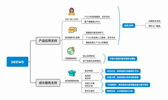 用戶可通過希沃400熱線、希沃微信公眾號、官網(wǎng)等全媒體平臺反饋問題,尋求幫助。每位人工客服都具備遠(yuǎn)程技術(shù)支持能力。無論你的問題是智能平板如何開關(guān)機(jī),還是設(shè)備出現(xiàn)問題,都能快速得到響應(yīng)。并且,希沃的產(chǎn)品支持服務(wù)覆蓋產(chǎn)品全生命周期,安裝、調(diào)試、上門維修、返廠維修、延保服務(wù)、以舊換新,快速、專業(yè)地滿足用戶的所有產(chǎn)品支持需求。