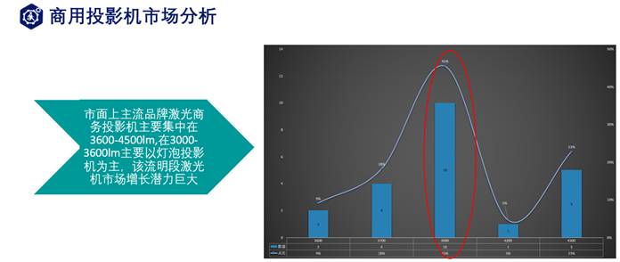 東方中原自有品牌索諾克上市以來,抓住激光新光源的技術(shù)革新啟點(diǎn),掀起投影及顯示技術(shù)行業(yè)浪潮,翟總提到,市面上主流品牌激光商務(wù)投影機(jī)主要集中在3600-4500lm,在3000-3600lm主要以燈泡投影機(jī)為主,該流明段激光機(jī)市場增長潛力巨大