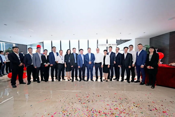 在總部員工的共同見證下,中文發(fā)集團黨委委員、國新文化黨委書記、董事、總經(jīng)理、奧威亞董事長姚勇與奧威亞創(chuàng)始人歐俊文為總部新址揭牌。隨著紅幕布徐徐落下,現(xiàn)場響起一陣熱烈的掌聲和歡呼聲,將整個活動推向了高潮。