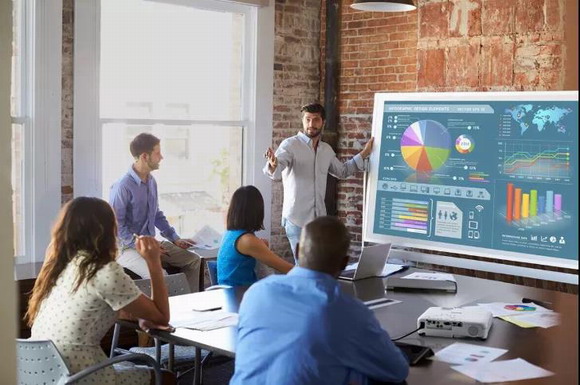 目光鎖定在愛普生商用投影機投射的屏幕上。