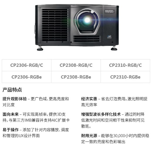 漢威激光與Christie聯(lián)合研發(fā)的6款創(chuàng)新一代無(wú)散斑RGB激光電影放映機(jī)產(chǎn)品擁有寬色域和高亮度,可以提高用戶(hù)的體驗(yàn)感;其全密封的防塵設(shè)計(jì)與自檢風(fēng)險(xiǎn)預(yù)警系統(tǒng),保障了機(jī)器運(yùn)營(yíng)的安全性;低耗材,高光學(xué)轉(zhuǎn)換率,降低了放映機(jī)后期的運(yùn)營(yíng)成本,是影院投資者和經(jīng)營(yíng)者的理想選擇。