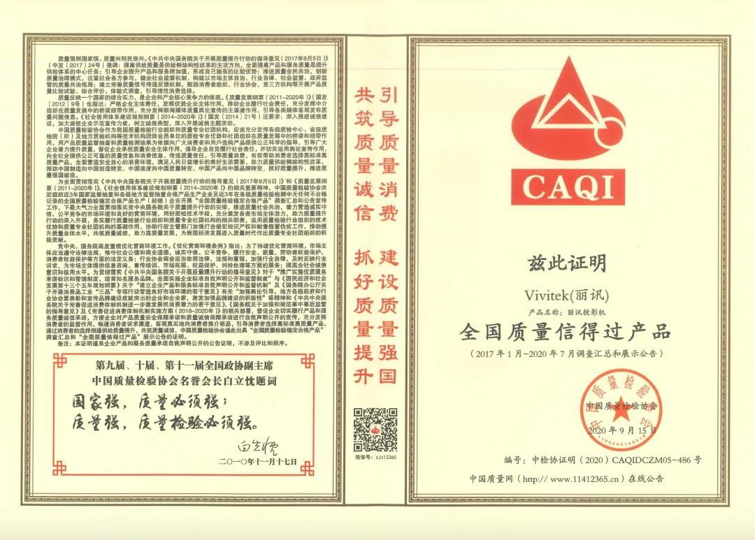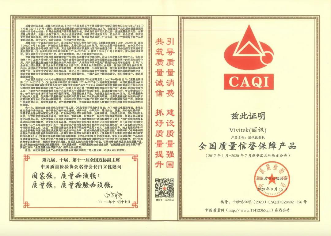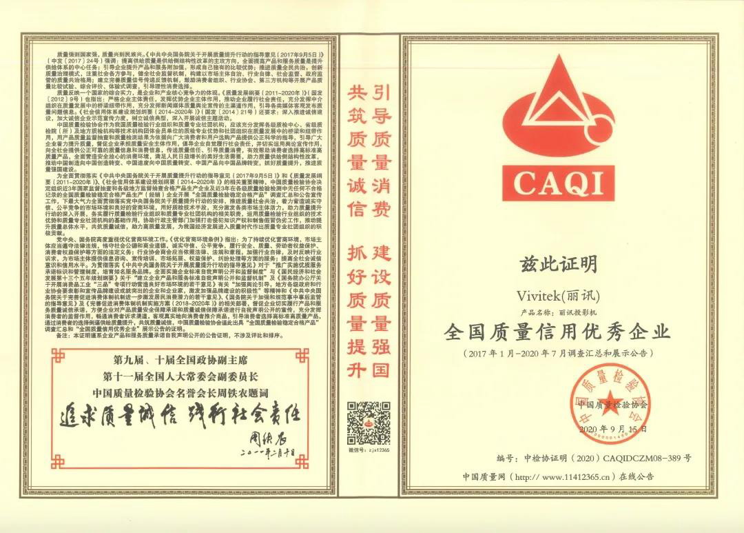 近日,在國家市場監(jiān)督管理總局聯(lián)合中共中央宣傳部、國家發(fā)展和改革委員會等十六個部門開展的以“建設(shè)質(zhì)量強國決勝全面小康”為主題的2020年9月的全國“質(zhì)量月”活動中,Vivitek(麗訊)憑借一如既往的過硬品質(zhì)和精益求精的質(zhì)量追求,榮獲2020年度“全國質(zhì)量誠信先進企業(yè)”、“全國質(zhì)量信用優(yōu)秀企業(yè)”、“全國投影設(shè)備行業(yè)質(zhì)量領(lǐng)先企業(yè)”、“全國投影設(shè)備行業(yè)質(zhì)量領(lǐng)先品牌”等多項稱號。