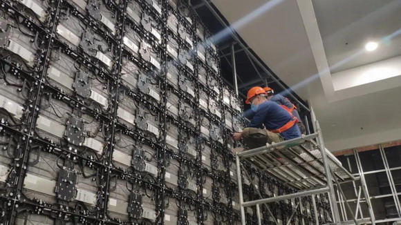 它在北京展會(huì)上的亮相不僅僅是為了賺足觀眾的“眼球”,也表明了GQY視訊的這款全倒裝 COB Mini LED節(jié)能冷屏已經(jīng)開始供貨。當(dāng)然了,我們要用事實(shí)說話,舉個(gè)例子!在目前正在裝修維護(hù)階段的開封市公安辦公大樓內(nèi),GQY視訊的76平米全倒裝COB大屏也在同步開展搭設(shè)調(diào)試工作,搭設(shè)調(diào)試工作的開始也意味著我們的全倒裝產(chǎn)品已經(jīng)大規(guī)模推向市場(chǎng),此次大屏的安裝工作經(jīng)公司安排特由GQY視訊寧波杭州灣生產(chǎn)基地的陳廠長(zhǎng)帶隊(duì)工程部的幾名同事一起前往,此番“老將出馬”也可看出公司對(duì)此項(xiàng)目的重視程度。