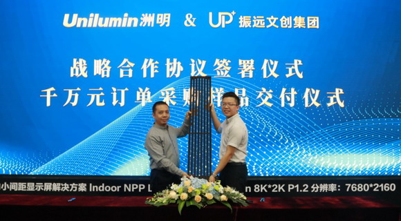 2020 年 11 月 19 日,洲明集團與廣州振遠文化創(chuàng)意產(chǎn)業(yè)有限公司(以下簡稱“振遠文創(chuàng)”)進行了戰(zhàn)略合作簽約與樣品交付儀式,強強聯(lián)合,力求在“新文創(chuàng)”中深入融合科技與創(chuàng)意,更好地滿足消費者日益增長的文化需求,共鑄文旅產(chǎn)業(yè)新高地。