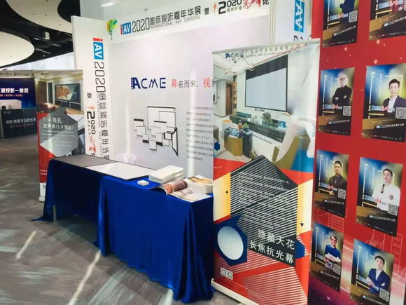 此次大會ACME參與并展出了自己的投影幕。因?yàn)樵诰频昱e行場地有限,所以我們僅展出了兩款市場最受歡迎的產(chǎn)品。一款是短焦抗光幕(激光電視專用屏),另外一款是2.8增益微珠幕,2.8增益微珠幕能夠在明亮環(huán)境中還原最好的畫面。