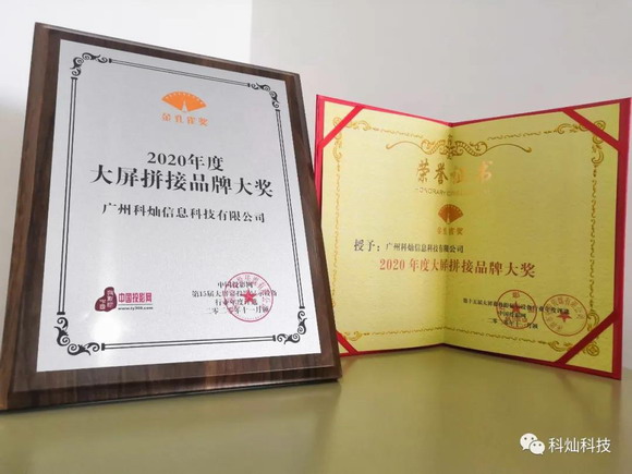 科燦科技作為國內(nèi)領(lǐng)先的大屏幕顯示系統(tǒng)整體解決方案提供商之一,一直致力于為客戶提供更好的顯示體驗和服務(wù),憑借著優(yōu)秀的行業(yè)技術(shù),良好用戶口碑,在2020視聽行業(yè)高峰論壇頒獎典禮上榮獲“2020年度大屏拼接品牌大獎”,蟬聯(lián)十屆該獎項!