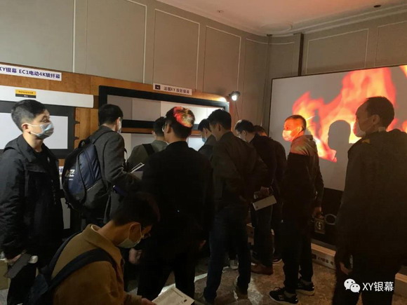 展會第二天,XY銀幕的展位上觀眾有增無減。熱門產(chǎn)品豪華隱藏天花幕以及地升幕等更是“門庭若市”,無論從功能還是美觀上來說,都極度吸引眾多觀眾。