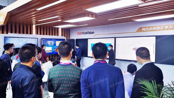 本次參展,鴻合科技展出了專為高等教育打造的智能交互顯示新品,如鴻合高職教智能交互平板、高職教智能交互黑板,以及先進的解決方案,包括鴻合雙屏教學解決方案、智慧教室解決方案和小組協(xié)作教室解決方案等,吸引了現(xiàn)場眾多參展觀眾駐足圍觀。