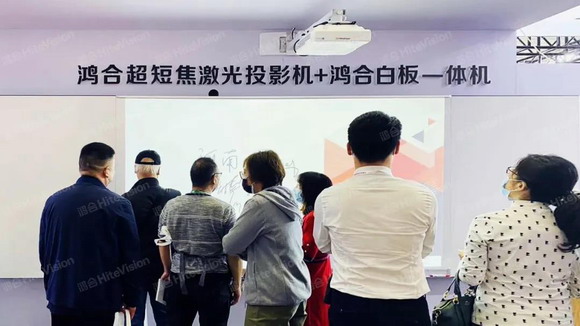 此外,鴻合展區(qū)還呈現(xiàn)了“鴻合超短焦激光投影機+白板一體機”這一解決方案。值得關注的是,鴻合高職教白板一體機在本次高博會首次亮相,超大尺寸,滿足高校各類學科精準色彩還原需求,超短距離投射更大畫幅的同時,新增兩側黑板,全幅面支持水性筆書寫,課上教師不再拘泥,盡情揮灑創(chuàng)意。
