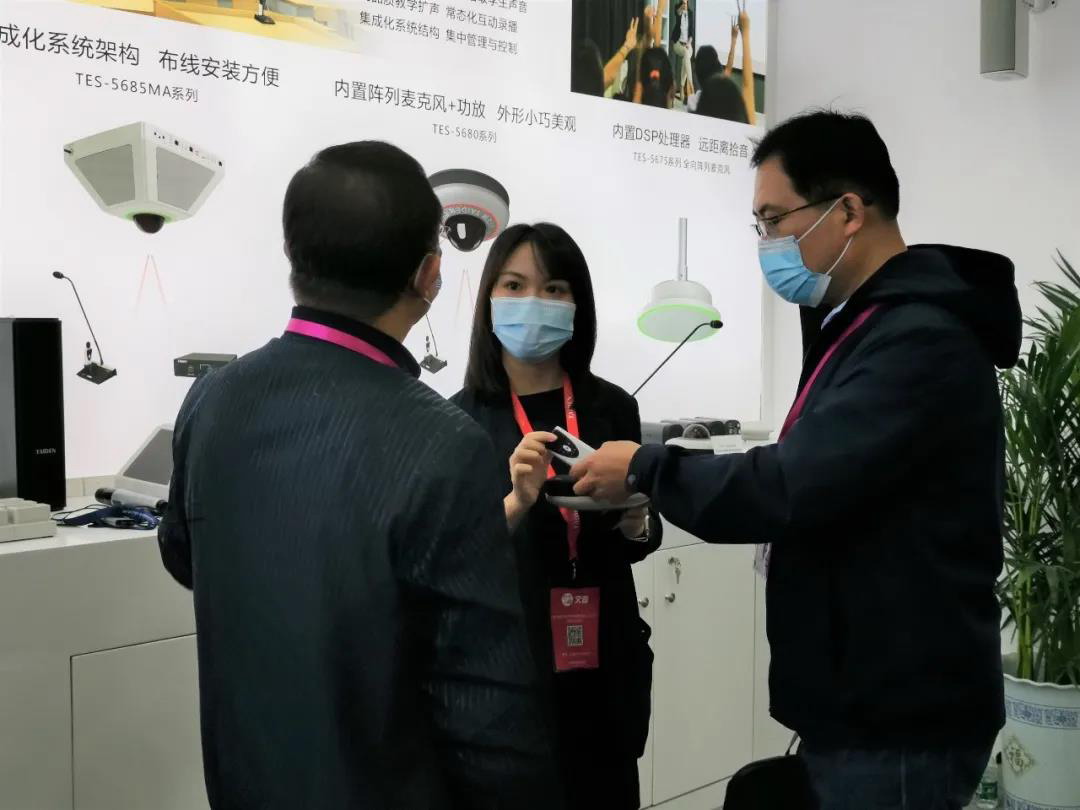 此外,經(jīng)典熱銷的TAIDEN TES-5600系列教室音頻系統(tǒng)同樣給高博會(huì)的觀眾帶去了不俗的體驗(yàn)。TAIDEN方案旨在為師生營造一個(gè)音質(zhì)清晰、綠色無輻射的教學(xué)聲音環(huán)境,讓老師能較長時(shí)間以自然聲授課而不受嗓音疲勞或咽喉疾病的困擾,讓學(xué)生能夠在清晰自然的教學(xué)聲中高效學(xué)習(xí)。TAIDEN數(shù)字紅外無線教學(xué)擴(kuò)聲系統(tǒng)主要由系統(tǒng)主機(jī)、紅外接收器、數(shù)字紅外麥克風(fēng)及音箱組成,系統(tǒng)主機(jī)內(nèi)置功放,可以直連音箱實(shí)現(xiàn)擴(kuò)聲,也可配合其他外置功放及線陣列音柱實(shí)現(xiàn)更優(yōu)質(zhì)的擴(kuò)聲體驗(yàn)。機(jī)身輕巧、時(shí)尚的設(shè)計(jì),提供多種款式選擇,使得現(xiàn)場的專家老師們愛不釋手。