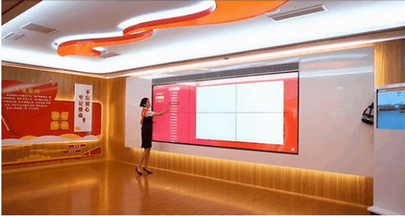 為了更好的利用現(xiàn)有空間,同輝信息還打造了具有互動性的智慧黨建展廳。該智慧黨建展廳可以實現(xiàn)入黨、黨建學(xué)習(xí)和黨建展示等功能,充分滿足沂水農(nóng)商行的黨建需求。