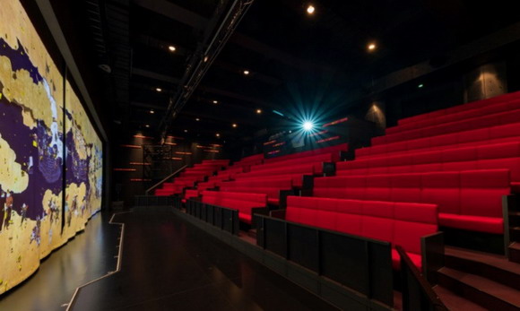 這塊19 米寬、4.84 米高的大型幕布用于投影數字內容。投影內容是由 Ushio Lighting Inc. 通過安裝在劇院后側的兩臺科視Christie Boxer 4K30 3DLP® 投影機實現的。兩臺投影機均配備科視Christie Mystique,一款基于攝像頭的自動化圖像校正與校準解決方案,可快速安裝、校正、校準及維護多投影系統(tǒng)。