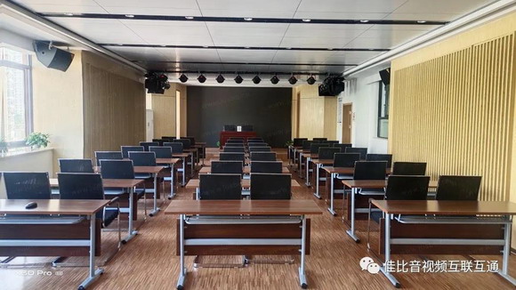 另一間多功能會議室,使用用途既需要滿足小規(guī)模日常開會發(fā)言,又滿足小型節(jié)目演出需要。結(jié)合現(xiàn)場實際情況,作為會議室使用時,主席臺配置的無線會議系統(tǒng),安裝布置簡單,具有多種會議模式切換,可設(shè)置優(yōu)先發(fā)言、發(fā)言數(shù)量、聲控發(fā)言等,保證發(fā)言人有序發(fā)言和靈活管控。配合合適功率擴聲音箱,能夠提供高質(zhì)量的語言清晰度,輕松打造一個高效率的會議環(huán)境。同時滿足舉辦小型節(jié)目使用時,聲場覆蓋均勻、聲音豐滿、足夠清晰的音質(zhì)要求。