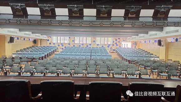 學校報告廳,作為長期舉辦大型主題會議、演講報告、學術(shù)交流、培訓會,同時兼具文藝演出活動的多功能多用途廳,對搭建的音頻系統(tǒng)有著較高需求。根據(jù)場地的高度和場地面積,主擴聲選擇6只JUSBE多功能XF系列音箱,安裝在觀眾區(qū)前排、中區(qū)、后區(qū)位置,具備高平滑的頻率響應(yīng)及激動人心的動感音質(zhì)表現(xiàn)。精確調(diào)整擴聲聲源,實現(xiàn)聲音均勻覆蓋無死角。在主席臺下設(shè)計了超低音箱和返聽音箱,保證主擴聲的低頻性能和主席臺上擁有清晰可懂的語音。輔以調(diào)音臺、周邊音頻效果器,使得整個系統(tǒng)在聲音處理上變得更加靈活、高效,最大還原現(xiàn)場聲音的真實性和保真度。