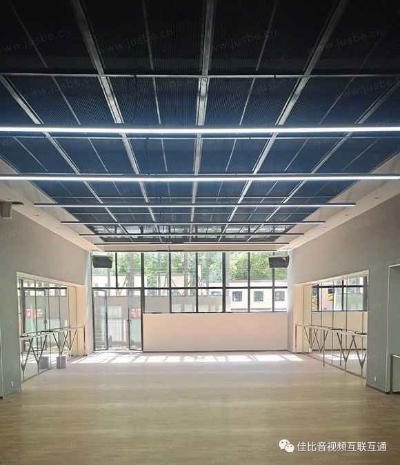 舞蹈室用于教學、形體訓練、舞蹈排練的教室,日常使用音響的頻率非常高。因此設(shè)計安裝的音響系統(tǒng),除滿足其運行時需要的穩(wěn)定性、安全性,還能夠滿足適合多種舞蹈場景所需要的擴聲效果,為師生營造出一個良好的藝術(shù)氛圍和愉悅的教學氣氛。