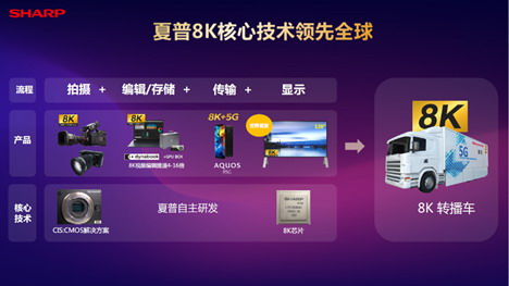 享有“8K之父”美譽(yù)的夏普,不僅已在8K技術(shù)上深耕二十余年,還率先將“8K+5G”提升到了戰(zhàn)略高度,積極推動(dòng)“8K+5G”生態(tài)鏈布局落地。現(xiàn)如今,夏普8K生態(tài)系統(tǒng)已完成在軟硬件方面的全面升級(jí),形成獨(dú)有的8K+5G解決方案。夏普還在硬件上發(fā)布了更多頂尖技術(shù)產(chǎn)品,含全球最大的120英寸8K電視、第三代民用級(jí)8K電視、8K 攝影機(jī)、8K 消費(fèi)級(jí)編輯主機(jī)以及夏普全球首部8K+5G 手機(jī)等。