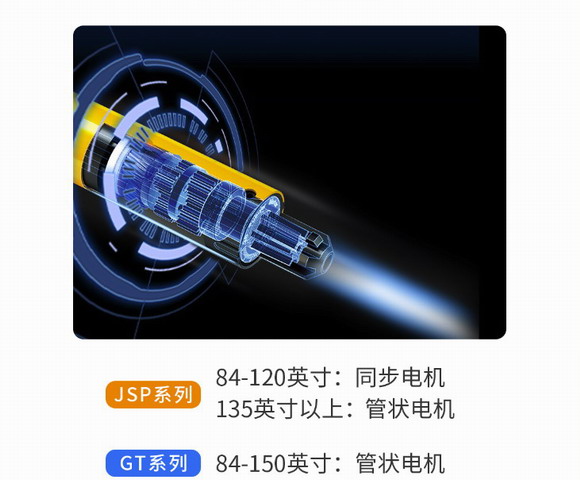 第二,電機(jī)對(duì)比。JSP系列采用德國(guó)工藝靜音電機(jī),更靜音更有力,節(jié)能環(huán)保。(小Tips:84-120英寸使用同步電機(jī),135英寸以上使用管狀電機(jī));GT系列則采用管狀電機(jī),使用壽命長(zhǎng),運(yùn)作速度快。具備限位記憶功能,過(guò)熱自動(dòng)保護(hù)裝置,給您安全無(wú)憂選擇!