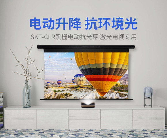 SKT-CLR的幕布材質(zhì)采用特殊黑柵棱鏡結(jié)構(gòu),可吸收上方環(huán)境光,無懼環(huán)境光干擾,真實(shí)的反射投影光線至觀眾的眼睛。奈米抗環(huán)境光幕,特殊成像涂層采用獨(dú)特抗光涂料制成,擁有極高的對比度與色相飽和度,是搭配激光電視的最佳選擇。