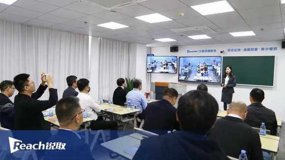 考察團一行相繼參觀了智慧教室、精品教室及常態(tài)化教室所組成的智慧教學(xué)中心,在日常的教學(xué)中,學(xué)校通過銳取教學(xué)中心輕松實現(xiàn)優(yōu)質(zhì)教學(xué)資源積累建設(shè),方案同時支持遠(yuǎn)程直播及互動教學(xué),幫助教學(xué)資源均衡分享,來賓們對銳取智慧教學(xué)中心的創(chuàng)新性與專業(yè)性表現(xiàn)了極大的肯定。