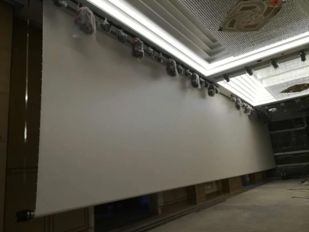 尺寸的電動(dòng)屏幕,而且屏幕的平整度比上卷的屏幕要平整。安裝掛件貫穿罩體,有力保障巨幕的安全性。