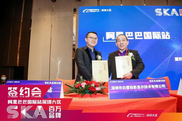 2020年12月28日,白雪銀幕與阿里巴巴國際站關(guān)于SKA項目戰(zhàn)略合作的簽約儀式在深圳大中華希爾頓三樓華世大宴會廳隆重舉行。