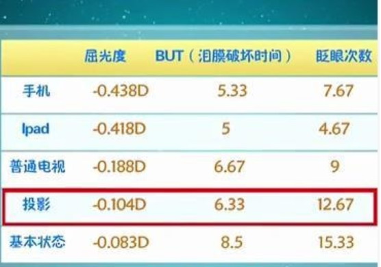 孩子看20分鐘的投影,視力平均下降到10.4度近視狀態(tài);