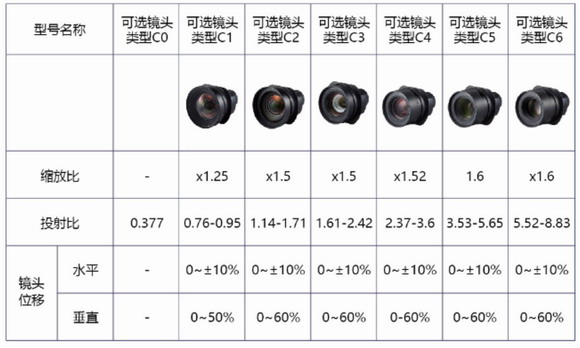 此外,PJ LU9080和PJ LU10600還是可換鏡的工程投影機(jī),有七款可選鏡頭,并支持鏡頭記憶功能。從超短焦、短焦、標(biāo)準(zhǔn)、長(zhǎng)焦到超長(zhǎng)焦鏡頭,能呈現(xiàn)各種投射比例和距離,其中投射比為0.377:1的C0鏡頭是理光自主研發(fā)生產(chǎn)的反射式超短焦鏡頭,0.95M左右即可投射120英寸超大畫面,即使在狹小空間里也能實(shí)現(xiàn)震撼的視覺體驗(yàn)。