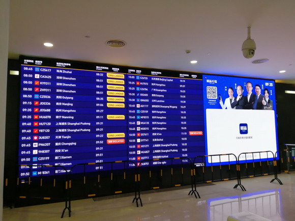 除智慧3C指揮大廳之外,聯(lián)建光電超高清智慧大屏在?诿捞m機場一期航站樓也大放異彩。該屏位于機場一期航站樓迎客大廳,高亮顯示效果即使在半戶外陽光下依然清晰靚麗加之高清、高灰、高刷、高飽和度、可視角度大等突出顯示性能,為途經(jīng)的旅客打開便利的信息傳遞窗口,同時也提升了?诿捞m機場的形象與品質(zhì),為二期新業(yè)務(wù)的開啟奠定了基石。