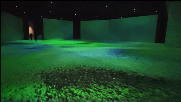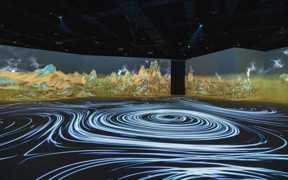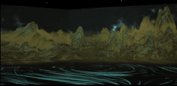 《江山新語(yǔ)》使用33臺(tái) RU70983工程投影機(jī),打造氣勢(shì)恢宏的沉浸式體驗(yàn)空間。內(nèi)容取材自中國(guó)十大傳世名畫之一的《千里江山圖》,真跡現(xiàn)存故宮博物院。該作品以長(zhǎng)卷形式,立足傳統(tǒng),畫面細(xì)致入微,煙波浩渺的江河、層巒起伏的群山構(gòu)成了一幅美妙的江南山水圖。