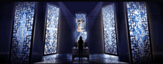 清乾隆釉彩大瓶,素有“瓷母”之稱!洞缮选吠ㄟ^(guò)7臺(tái) RU47723工程投影機(jī)將其17重釉彩工藝一一還原解構(gòu),融合瓶體及屏風(fēng)背景,延展其精致豐富的主題紋飾。