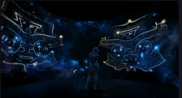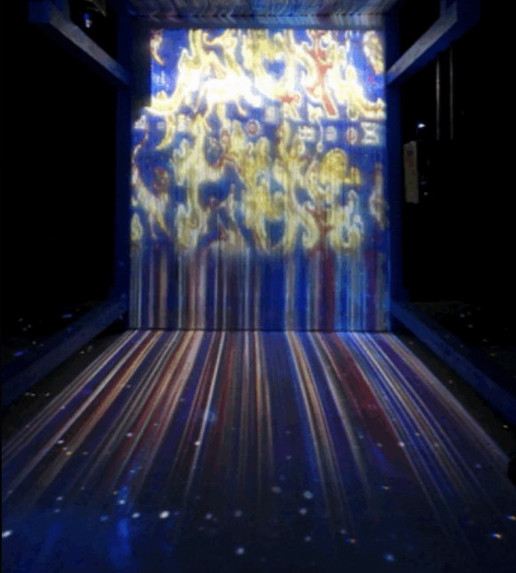 “五星出東方利中國(guó)”錦護(hù)膊,藏于新疆維吾爾自治區(qū)博物館,為東漢織錦,制作工藝復(fù)雜,是古代勞動(dòng)人民最高智慧的結(jié)晶。《織天機(jī)》展項(xiàng)通過(guò)8臺(tái)Vivitek(麗訊) RU70983工程投影機(jī),還原恢弘的巨型織機(jī)裝置,伴隨著夢(mèng)幻的星河流動(dòng),織就出五星出東方的祥瑞圖案,以絕妙的傳統(tǒng)織錦工藝,襯托中華歷史悠久的圖騰文化。