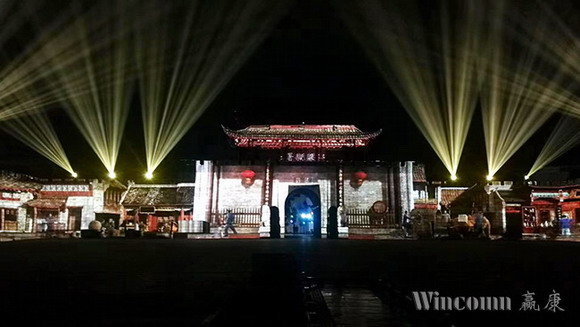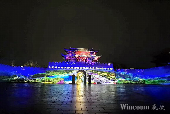 該演出中的古城樓,城墻部分長113米,城樓的最高處為17米,城墻和城樓之間的前后縱深達35米,是一座氣勢恢宏的經(jīng)典古代城樓建筑, 建于唐朝元和十一年,距今有一千一百八十多年的歷史。贏康科技憑借豐富的古建筑項目經(jīng)驗,為該項目采用了十余臺激光投影機,根據(jù)建筑的特點采用了20000流明、17000流明和13000流明等不同亮度投影機,進行靈活的混合設(shè)計。該投影方案從設(shè)備的高亮度需求,優(yōu)質(zhì)的畫面呈現(xiàn),到系統(tǒng)的平穩(wěn)可靠、靜音運行,都保證了上千余名游客的良好觀看體驗,呈現(xiàn)了一場細膩精美,綺麗驚艷的古城光影秀演出。