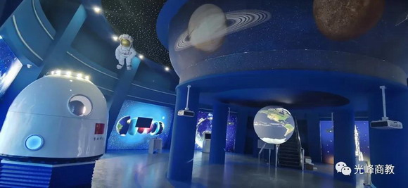 科技館的航天航空館中藏著浩瀚的宇宙,最亮眼的當(dāng)屬采用4臺(tái)光峰長(zhǎng)焦高亮投影機(jī)融合打造的直徑1.5米的“地球”,整個(gè)畫面無(wú)縫融合,完美的呈現(xiàn)地球的輪廓。