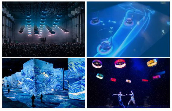 展出結(jié)合新媒體藝術(shù)、燈光、視覺、聲音、藝術(shù)裝置及內(nèi)容等于一體的新媒體藝術(shù)作品,相當于一場大型的線下新媒體藝術(shù)展覽。