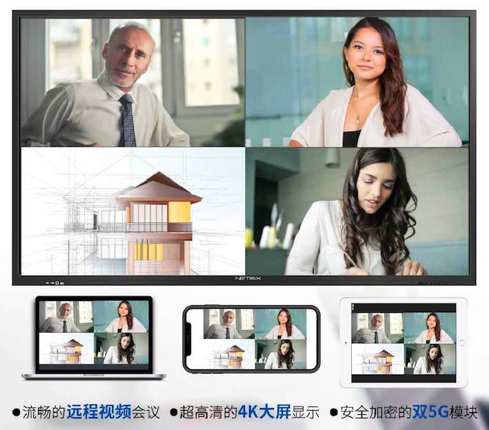 不僅顯示出色,NETRIX在會議效率的提升上也深受好評。集電視、白板、音響、攝像頭、麥克風等于一身的NETRIX,擁有無線投屏、視頻會議、靈活批注等多種功能,讓日常會議效率大幅提升。通過電腦、手機、iPad等設備,可以輕松快速穩(wěn)定地將畫面內容無線傳屏到NETRIX的4K高清大屏上,擺脫布線的麻煩,令會議效率更高;遠程多方視頻會議功能,令遠程會診方便快捷,為疫情診治助力,保障疫情期間工作高效協(xié)同。如此高效會議的背后源自于NETRIX內置Android8.0系統(tǒng)、四核處理器、雙5G模塊等強勁性能的大力支持。