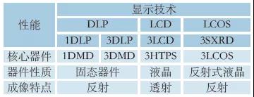 表3 目前投影機(jī)采用的幾種顯示技術(shù)