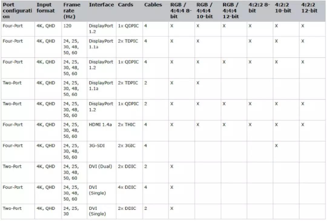 認(rèn)真仔細(xì)閱讀用戶(hù)手冊(cè)和安裝手冊(cè)是極其必要的,理解其中的內(nèi)容。特別需要注意的是接口部分的內(nèi)容,這對(duì)匹配信號(hào)源至關(guān)重要,同時(shí)也決定信號(hào)傳輸設(shè)備的選擇。如表4所示,可以看到投影機(jī)真正的信號(hào)處理能力,不同的接口,能接受處理的信號(hào)是不同的。