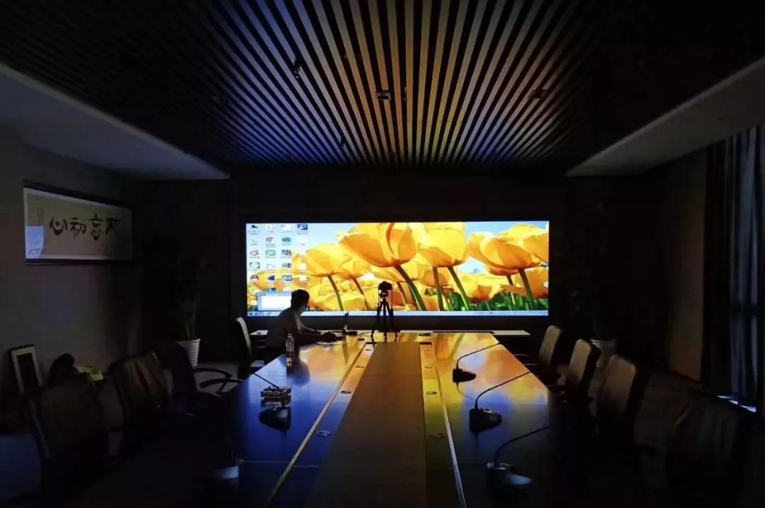 ▲某市中國人保某會議室,焦點2x100激光融合硬屏搭配兩臺sharp激光投影