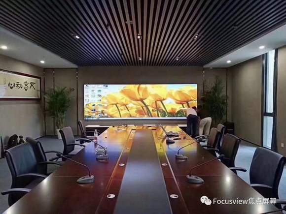 ▲某會議室,焦點屏幕2*120 搭配兩臺海信激光大屏融合