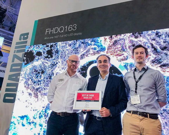 全新QUAD系列LED一體機成為本屆ISE展會一大亮點,它充分體現(xiàn)了LED屏幕輕薄易組裝優(yōu)勢,并將視訊處理器直接嵌入LED屏幕,實現(xiàn)了真正的一體化設計。這款新品提供163英寸Full HD LED廣視角精細大畫面,簡化了工程安裝過程及時間,大幅降低項目成本,非常適合會議室、展覽表演、電視演播廳等大型專業(yè)視聽場合,此次首秀贏得媒體與用戶的高度認可,一舉拿下權(quán)威科技媒體“Installation”評選的“BEST OF THE SHOW”大獎。