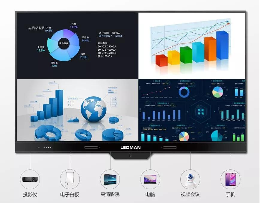 ledhub的交互屏幕全部采用雷曼自主專利——基于cob集成封裝技術(shù)的micro led超高清顯示屏,并且以100吋以上的大屏幕為主。