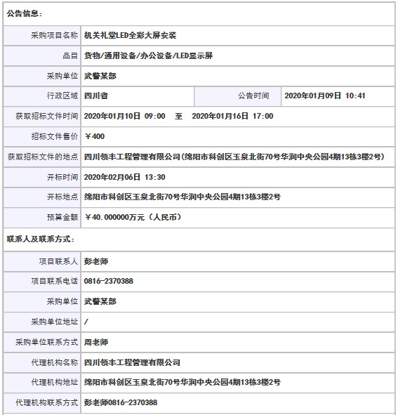 采購品目: 貨物/通用設(shè)備/辦公設(shè)備/LED顯示屏