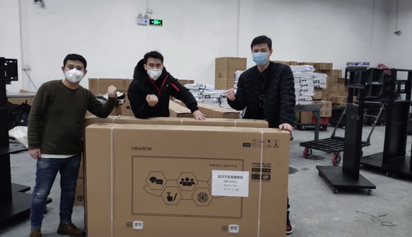 在接到需求后,newline迅速成立工作小組,與心醫(yī)跨地區(qū)協(xié)同“作戰(zhàn)”,克服物流、醫(yī)院進(jìn)出入等重重困難,將3整套newline會(huì)議平板安全送達(dá)武漢同濟(jì)醫(yī)院本院及其分院的中法新城院區(qū)和光谷院區(qū),并連夜完成安裝、調(diào)試后投入工作,支援一線抗擊疫情。