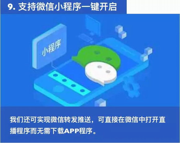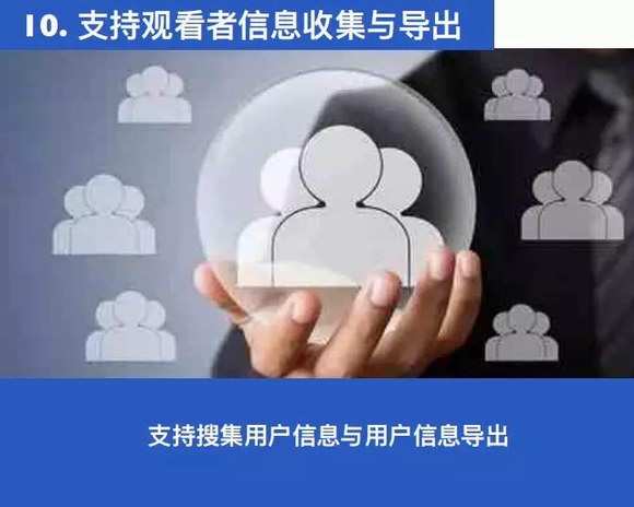 此套系統(tǒng)可同時支持多平臺直播推送,支持微信轉(zhuǎn)發(fā),在無需下載任何app的情況下,一鍵開啟觀看模式,支持粉絲評論與實時問答等互動,支持用戶數(shù)據(jù)搜集與導出。