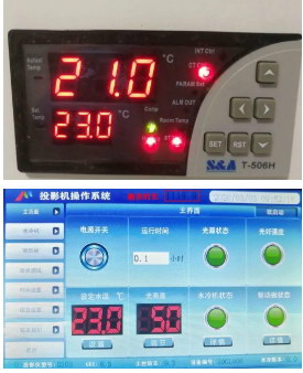 設(shè)備開啟無異常后,可以開啟光源,加載影片進(jìn)行影片播放。光源開啟前,確保水冷機(jī)溫度正常(排風(fēng)或者空調(diào)正常工作)。