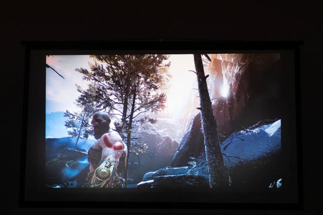 這是很多游戲博主體驗家用投影機后的感受,他們把家用投影機稱作“全景外設(shè)”,100英寸大畫面,整個游戲世界被等比例放大,逼真的武器、沒過膝蓋的草叢、氣勢3米8的厚血Boss。因為畫面放大,玩家們可以更好地進入游戲世界,感受小屏幕難以提供的臨場感,就像是被直接“空投”到熟悉的戰(zhàn)場。環(huán)顧四周,這地兒我熟。