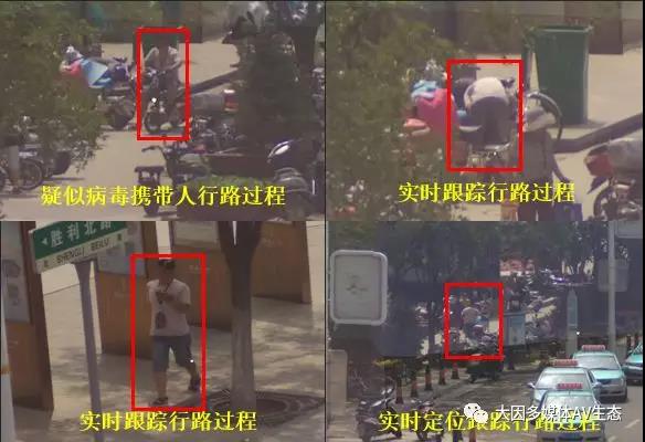相機(jī)跟蹤識(shí)別目標(biāo),并對(duì)目標(biāo)進(jìn)行跨相機(jī)接力跟蹤。病毒攜帶者軌跡統(tǒng)一投射到衛(wèi)星圖,動(dòng)畫呈現(xiàn)!耙摺毙兄帲挥[無余。