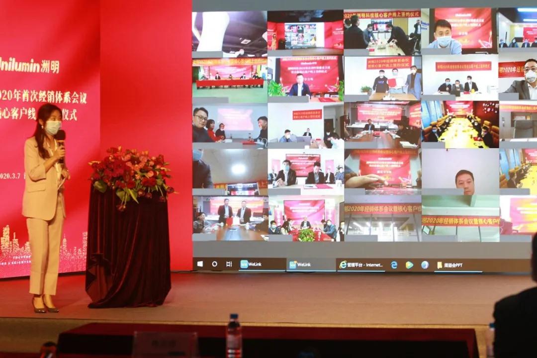 2020年3月7日,洲明科技召開了別開生面的2020年首次經(jīng)銷體系會議暨首批核心客戶線上簽約儀式。